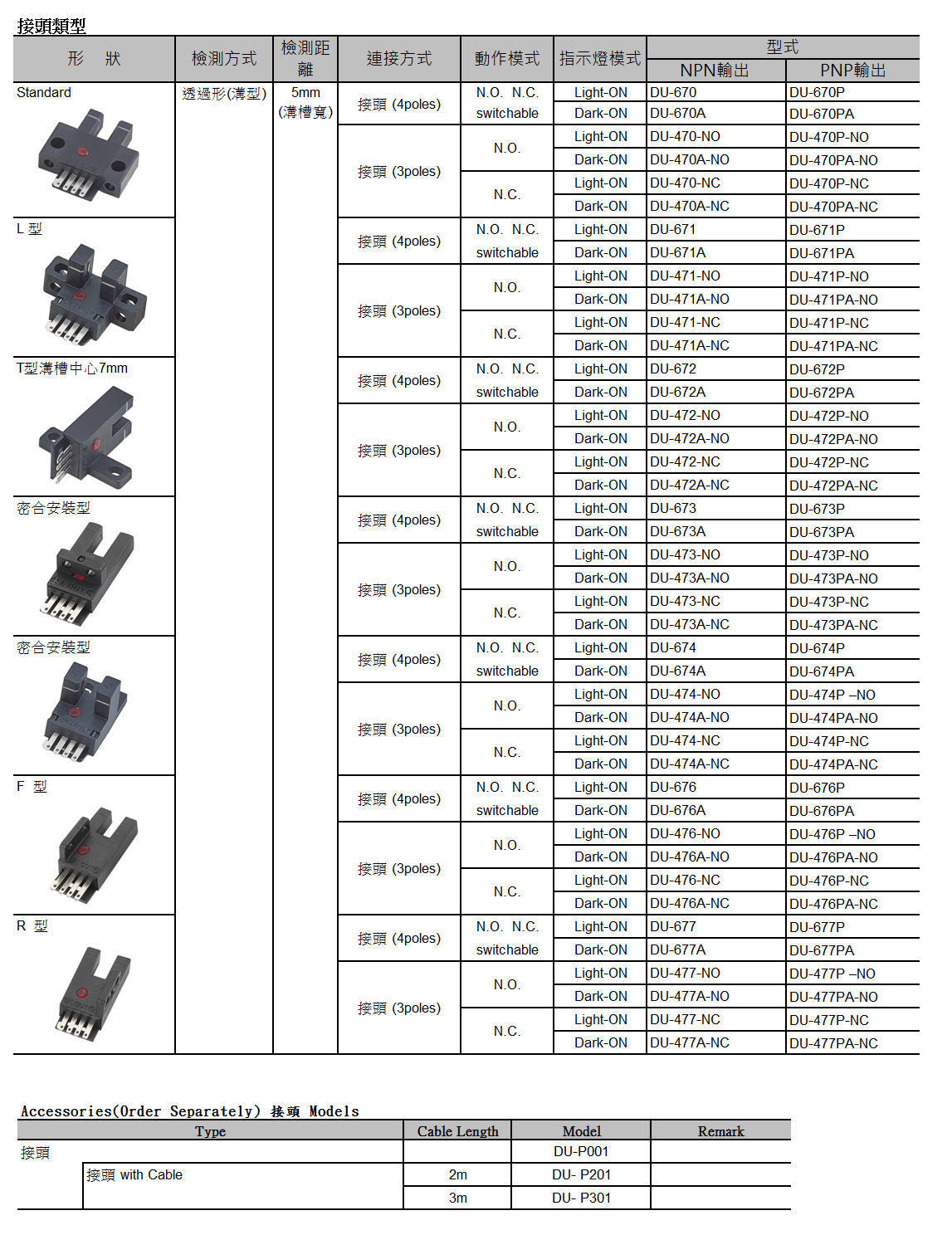• 備有遮光時ON/入光時ON的動作模態切換型