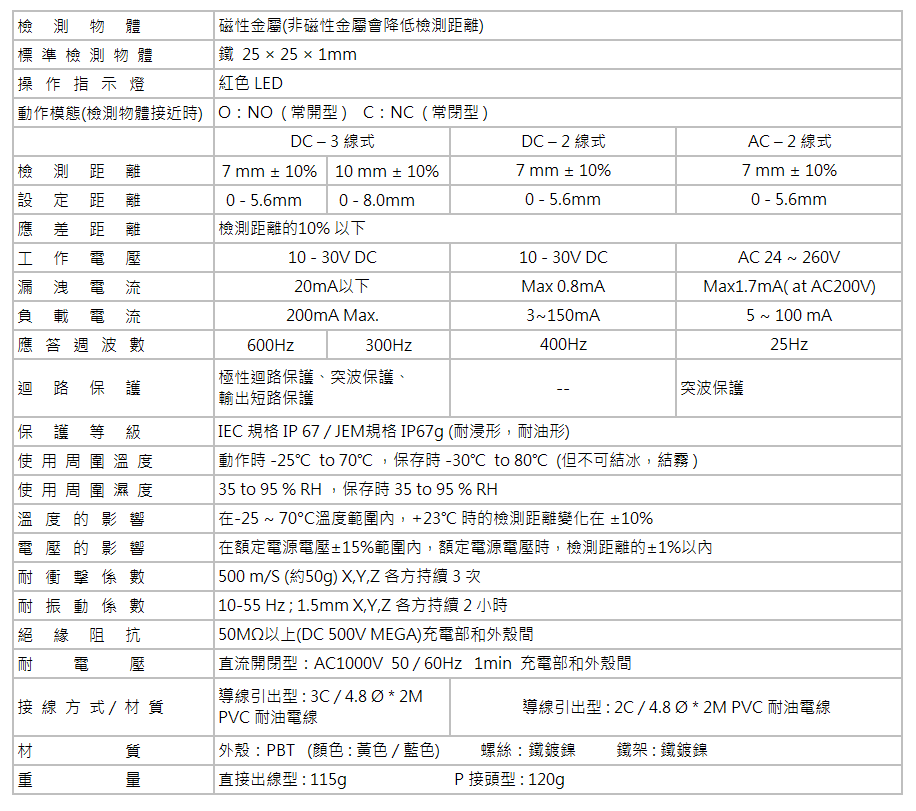 .檢出距離:DC - 3 : 7 mm 10 mm