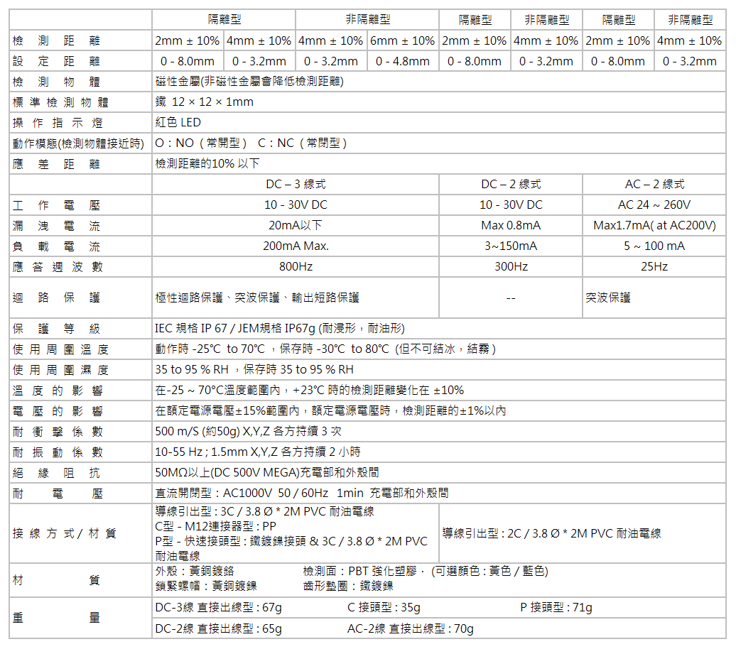 .檢出距離:2 mm ~ 6 mm。