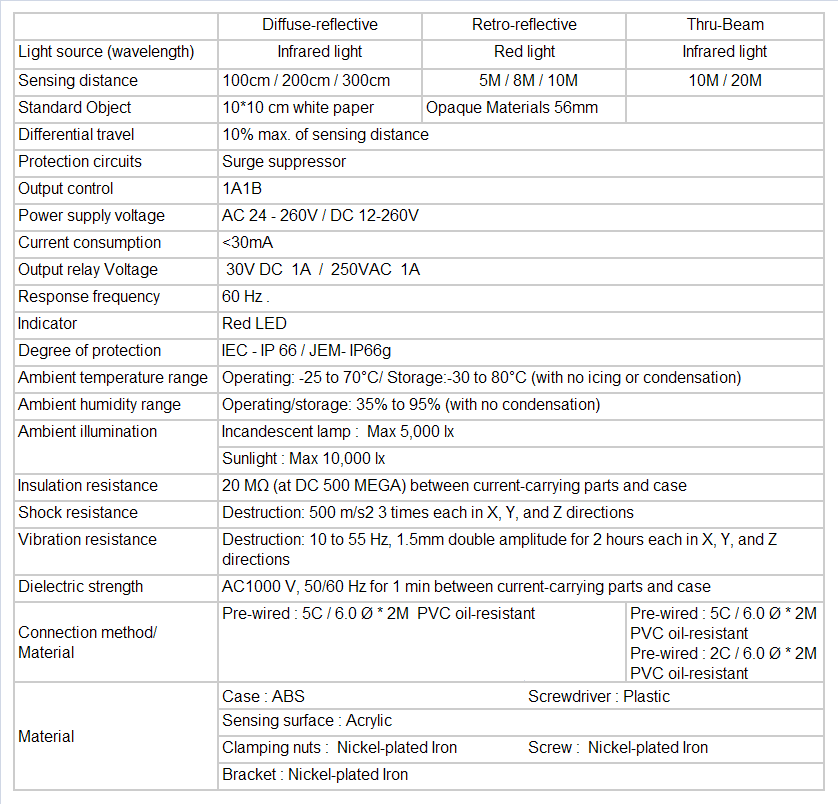Built-in Power Supply AC 24~260V / DC12~240V Photoelectric