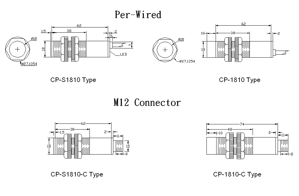 M18 塑膠圓管靜電容開關