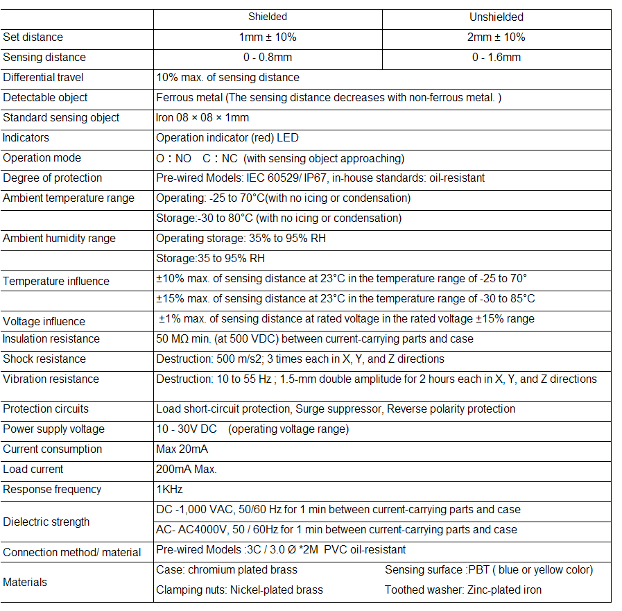 Metal Tubular M8 Type Inductive Proximity Sensors